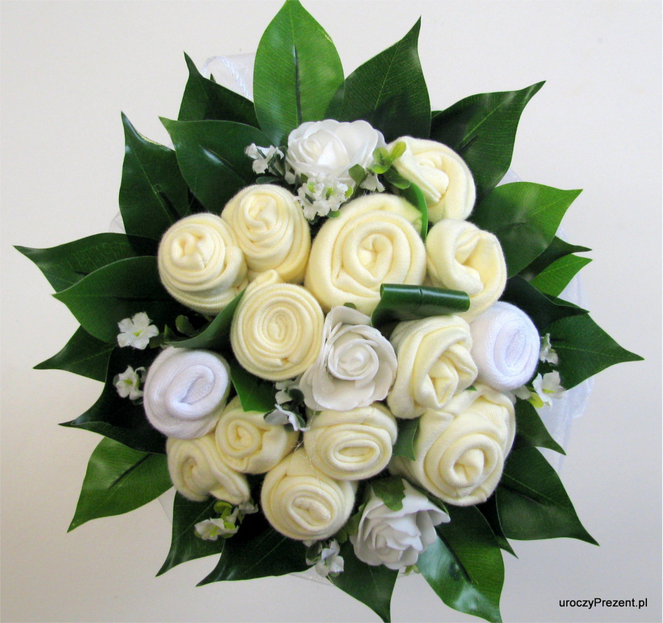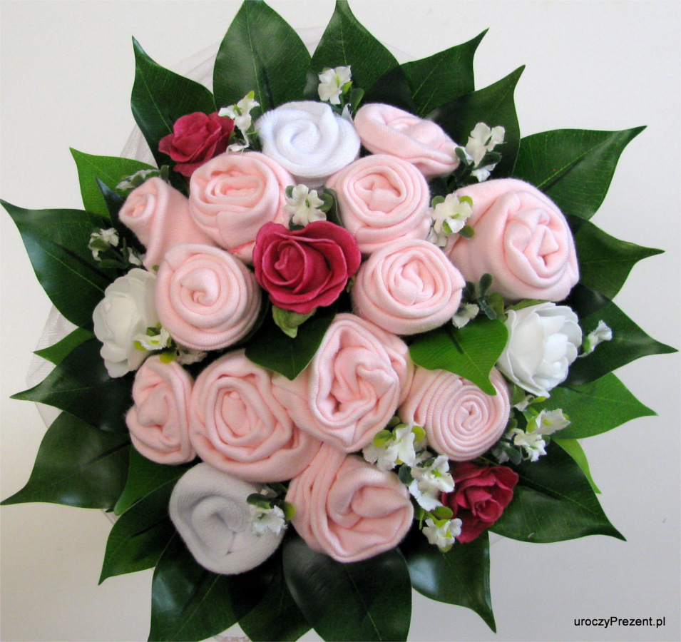 Bukiety z ubranek niemowlęcych to propozycja uroczego prezentu z okazji narodzin dziecka, chrztu lub baby shower.